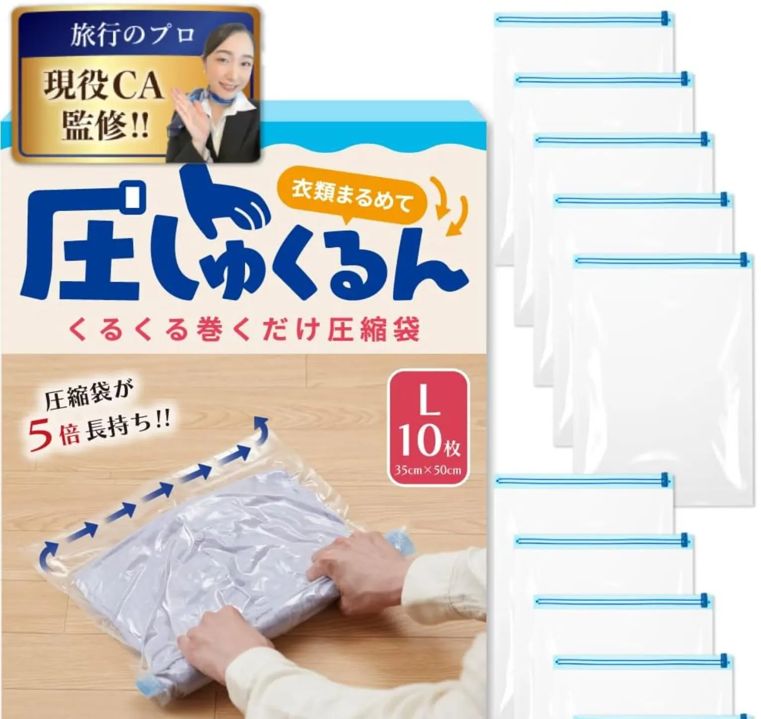 今回ご紹介する「Danke Bestens! 圧しゅくるん」は、現役の客室乗務員が監修した旅行用圧縮袋です。掃除機不要で場所を選ばず使えるのに、しっかり圧縮できて空気が戻らない——そんな理想を実現した製品として注目を集めています。