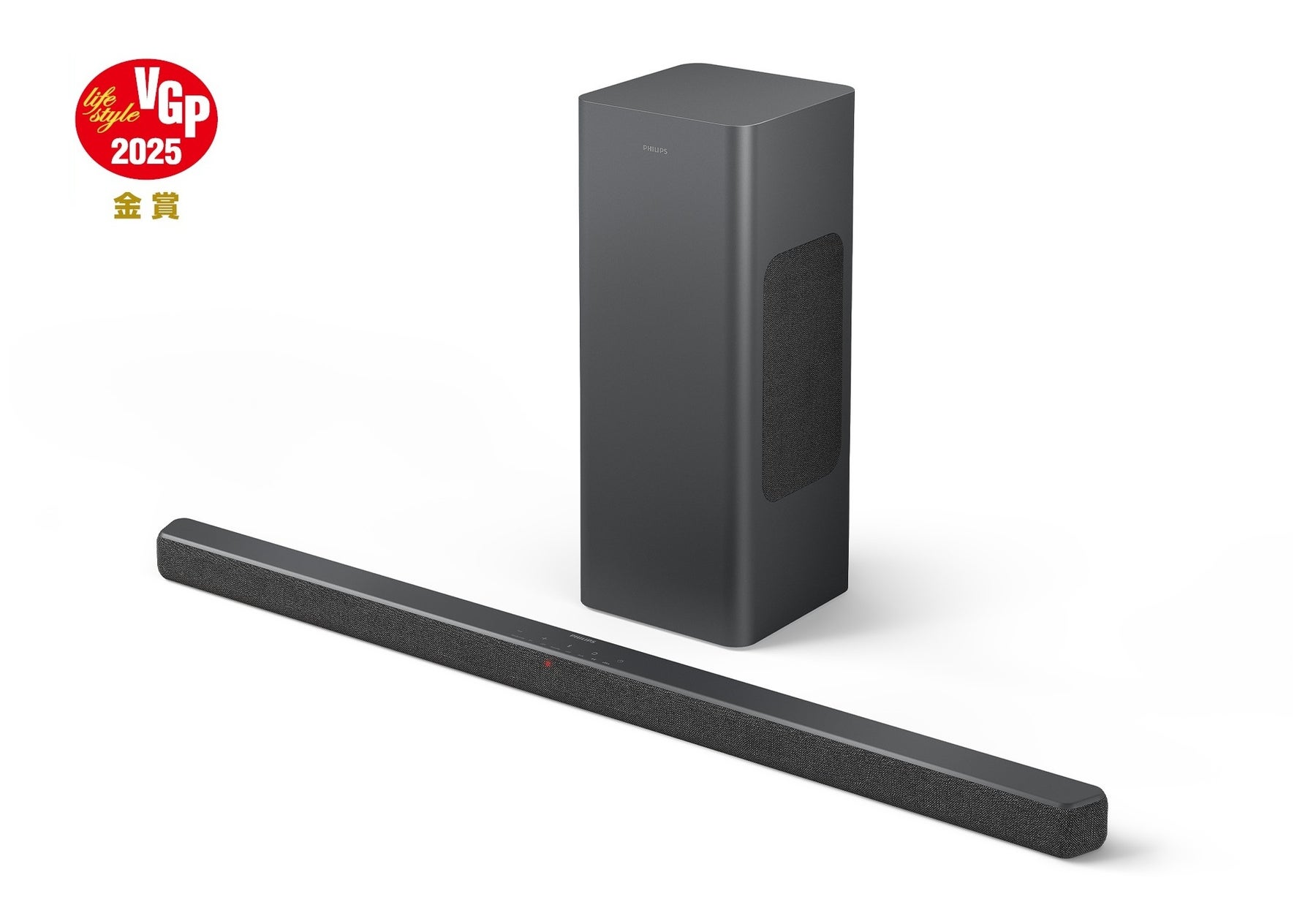 Philips TAB6309は、薄さ37mmという超スリムなデザインが特徴で、大型テレビにも干渉しません。その軽量・コンパクトなサイズ感により、どのようなリビングスペースにも設置が容易で、ワイヤレスサブウーファーは自由に配置できます。このデザイン性が購入者に高く評価されています。